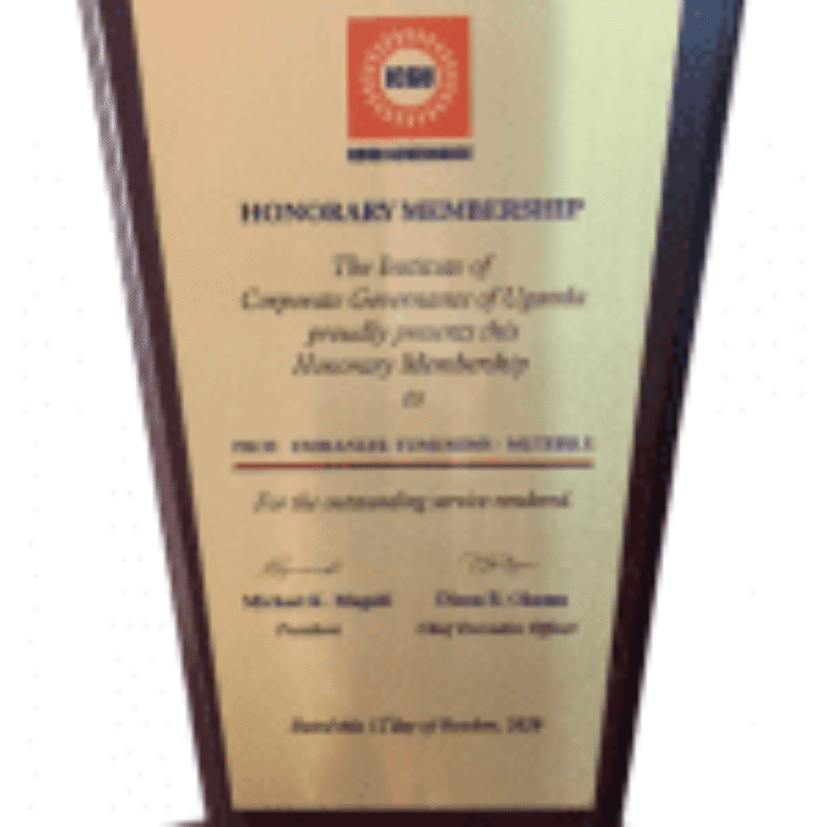 The Institute of Governance of Uganda proudly presents this Honorary Membership to Pro Emmanuel Tumusiime Mutebile for the outstanding service rendered.